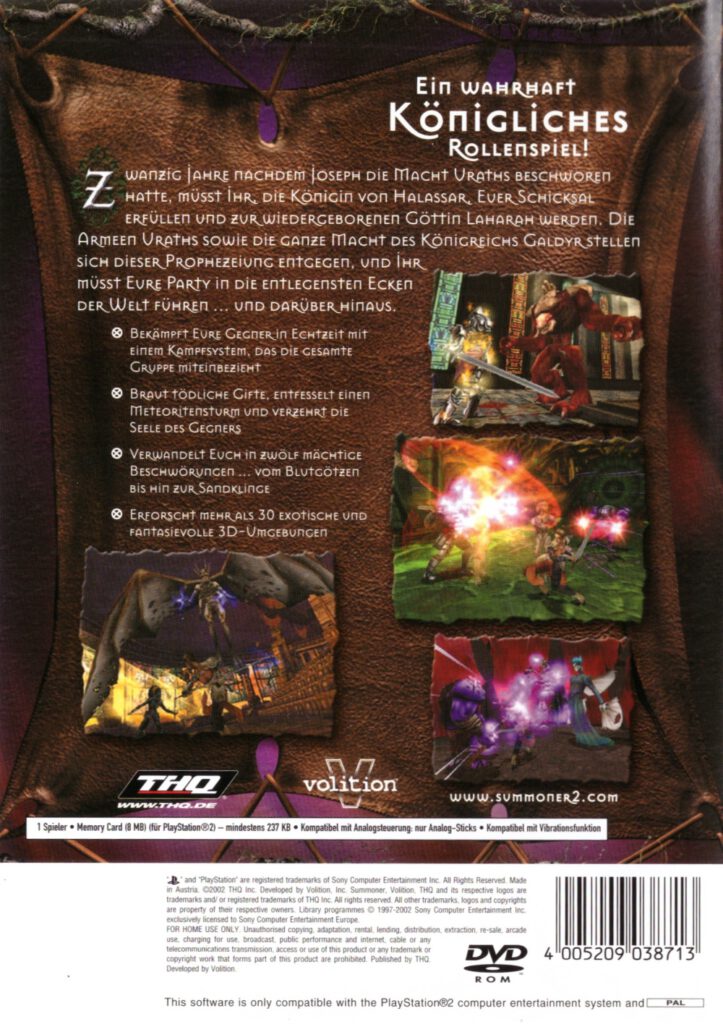 Summoner 2 ist ein Rollenspiel mit Action-fokussiertem Kampfsystem, das von THQ im Jahr 2002 exklusiv für die PlayStation 2 veröffentlicht wurde. Als Nachfolger des ersten Summoner-Titels knüpft das Spiel erzählerisch nicht direkt an seinen Vorgänger an, sondern erzählt eine neue gänzlich neue Geschichte.