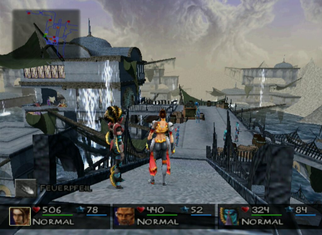 Was mich auf Dauer abseits der ansonsten tollen Atmosphäre des Spiels jedoch stört, hat mit der vergleichsweise rückständigen Grafik zu tun. Ich denke man kann durchaus festhalten, dass Summoner 2 nicht gerade zu den optischen Highlights unter den Playstation 2 Rollenspielen zählt. Insbesondere der geringe Detailgrad der Figurenmodelle und die hölzernen Animationen wirken einfach nicht zeitgemäß für das Jahr 2002. Zum Vergleich: das grafisch opulente Final Fantasy X erschien im gleichen Jahr! Hier wird deutlich, dass Summoner 2 auf der selben Grafik-Engine fußt, wie sein zwei Jahre alte Vorgänger.